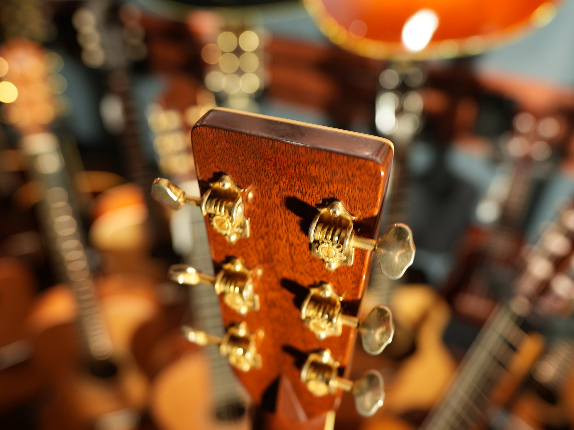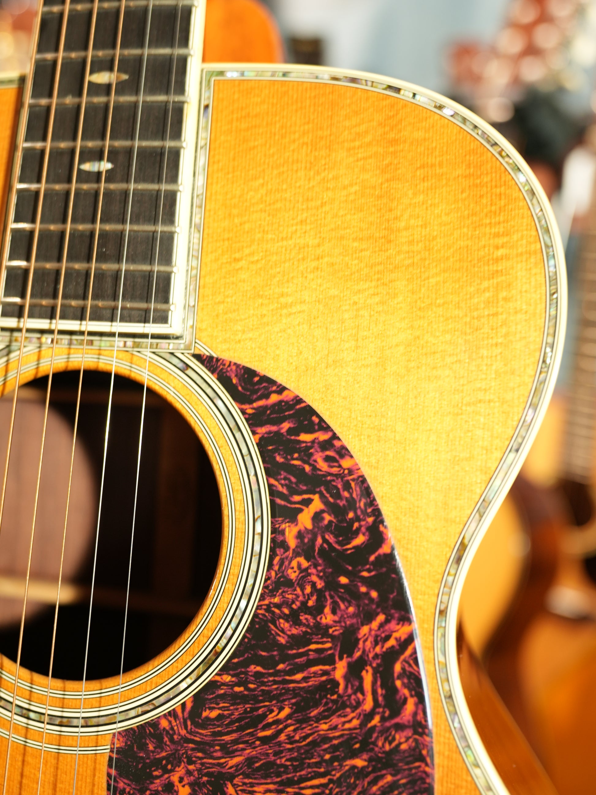 シトカス・プルーストップとインディアン・ローズウッドのサイド&バックという、マーティン伝統の組み合わせに、華やかなアバロン・トリムとロゼッタが施された仕様。
