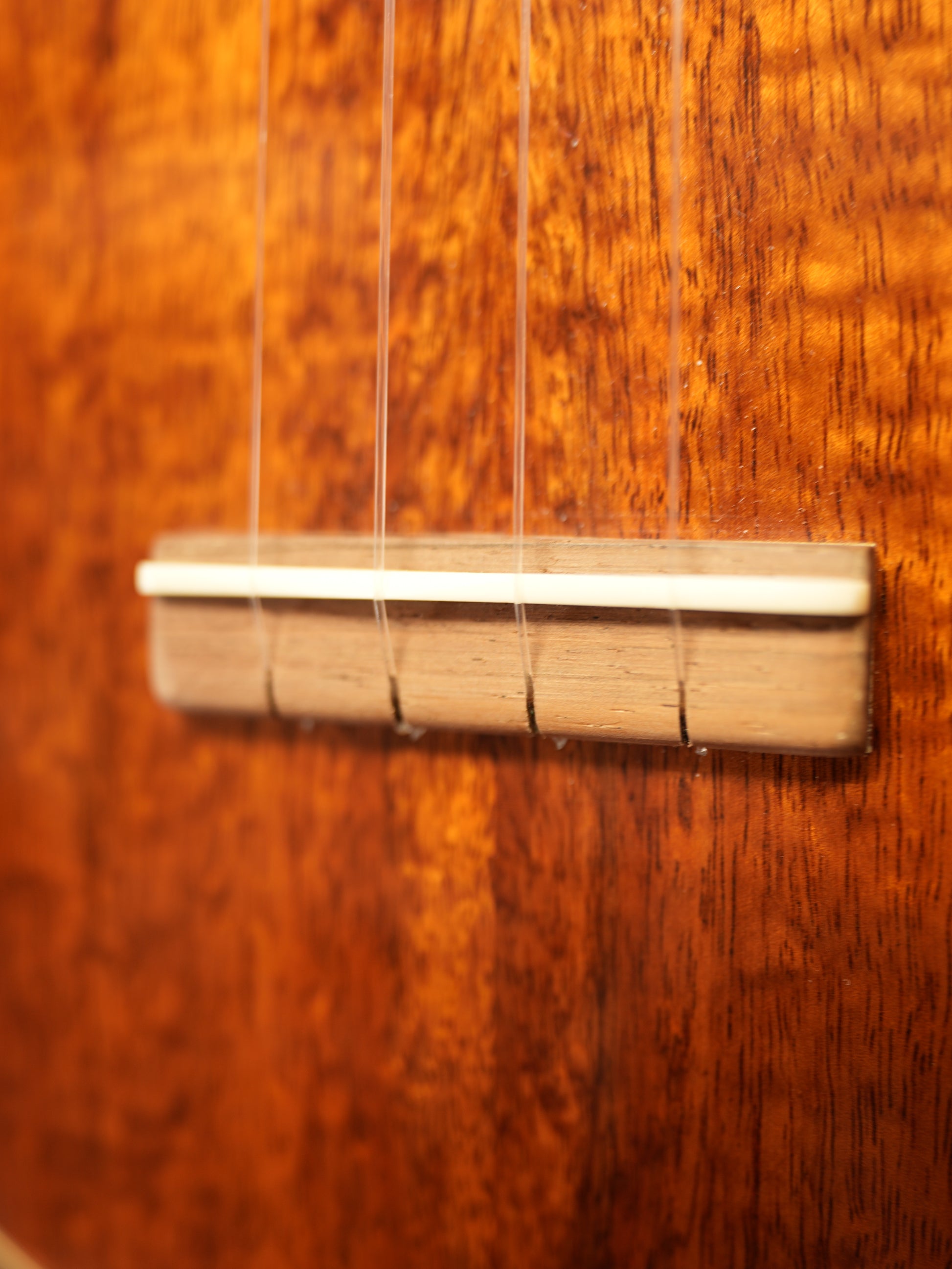 ボディには美しい玉杢の単板ハワイアン・コア、指板/ブリッジには希少なブラジリアン・ローズウッドを採用。指板は18フレットまであり、演奏性とルックスを両立した仕上がりです。ブリッジはUC-1Cよりややサイズアップされており、音色の一体感にも寄与しています。