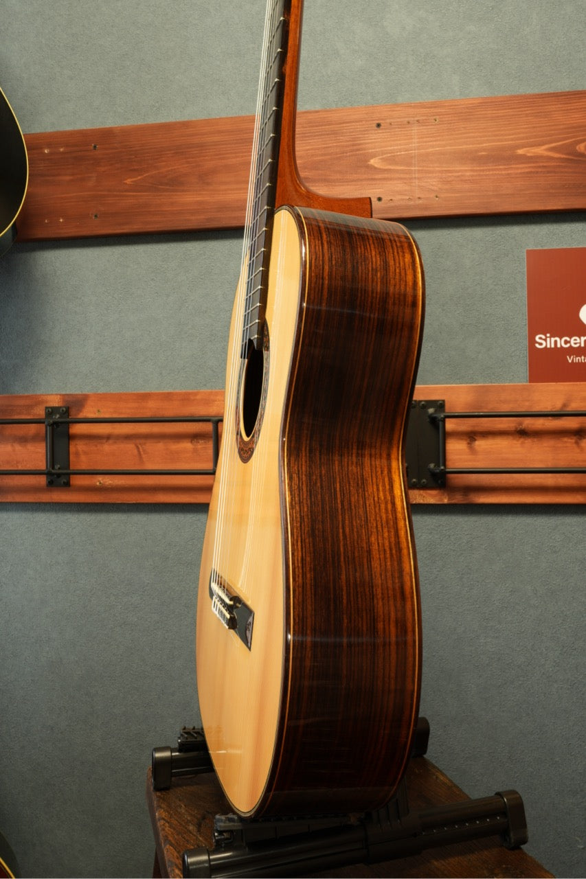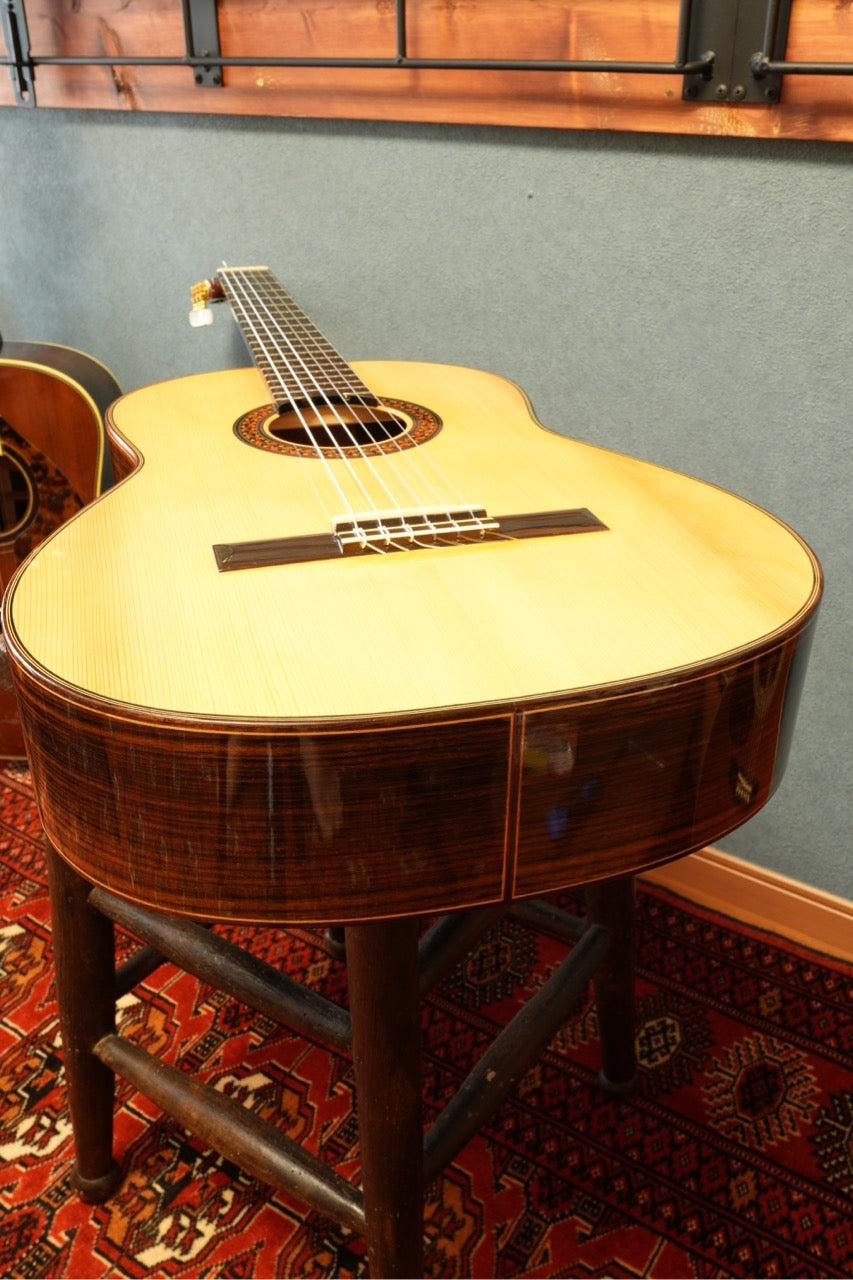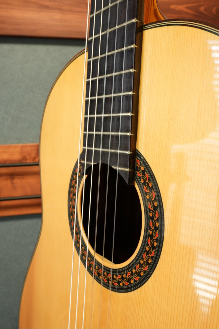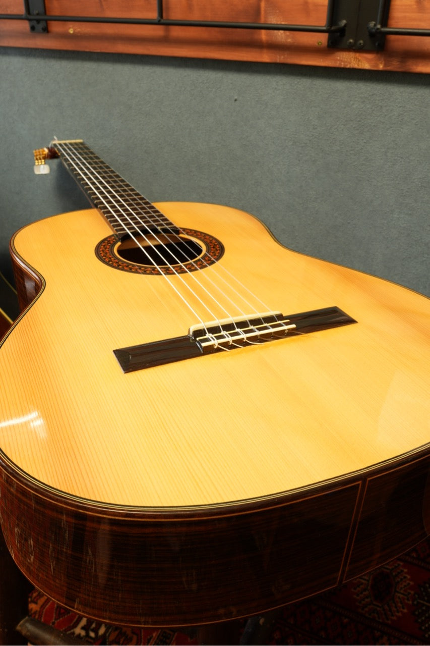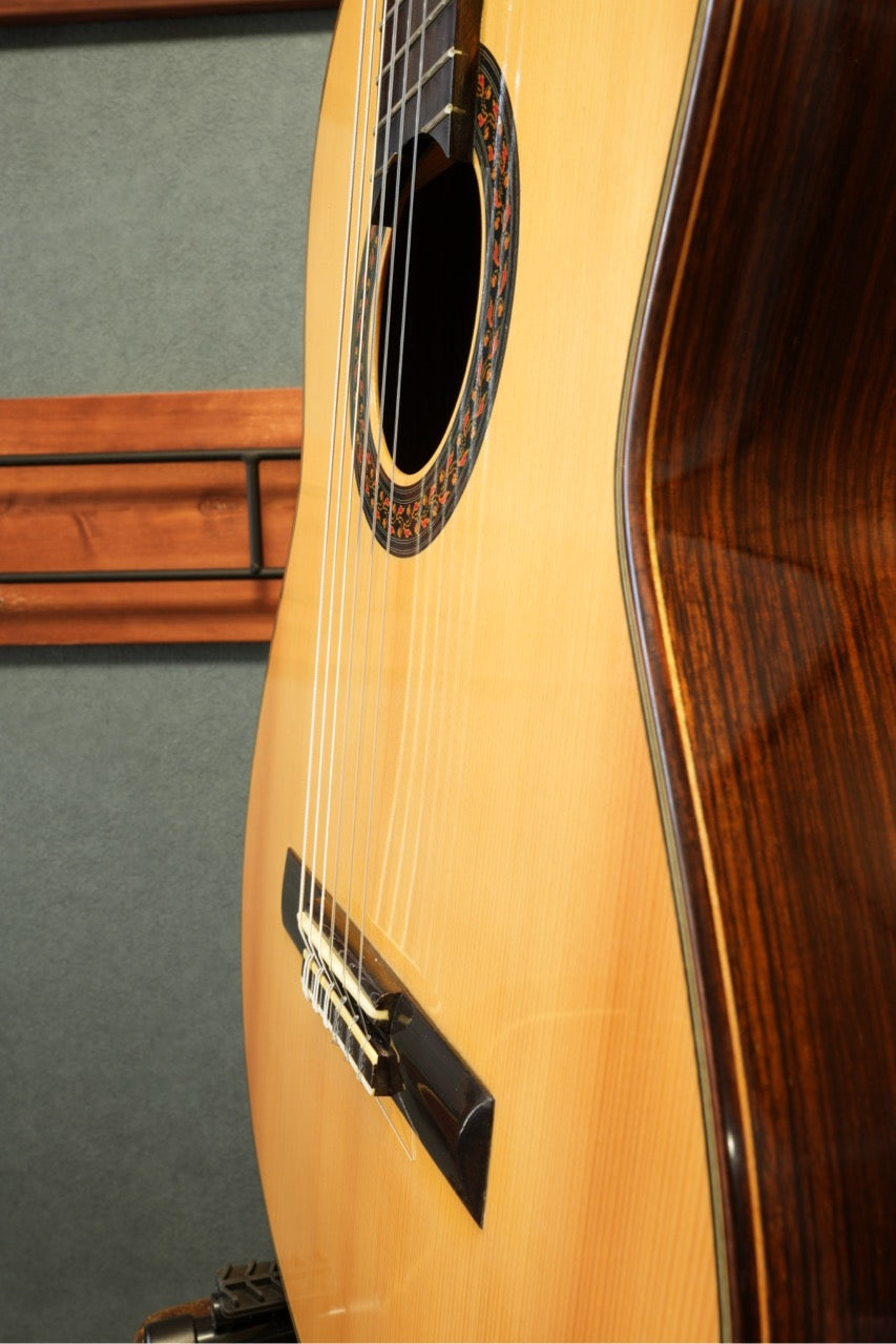 本器は、スプルース単板トップとローズウッド単板サイド&バックの組み合わせによる、伝統的なクラシカルサウンドを持つモデルです。